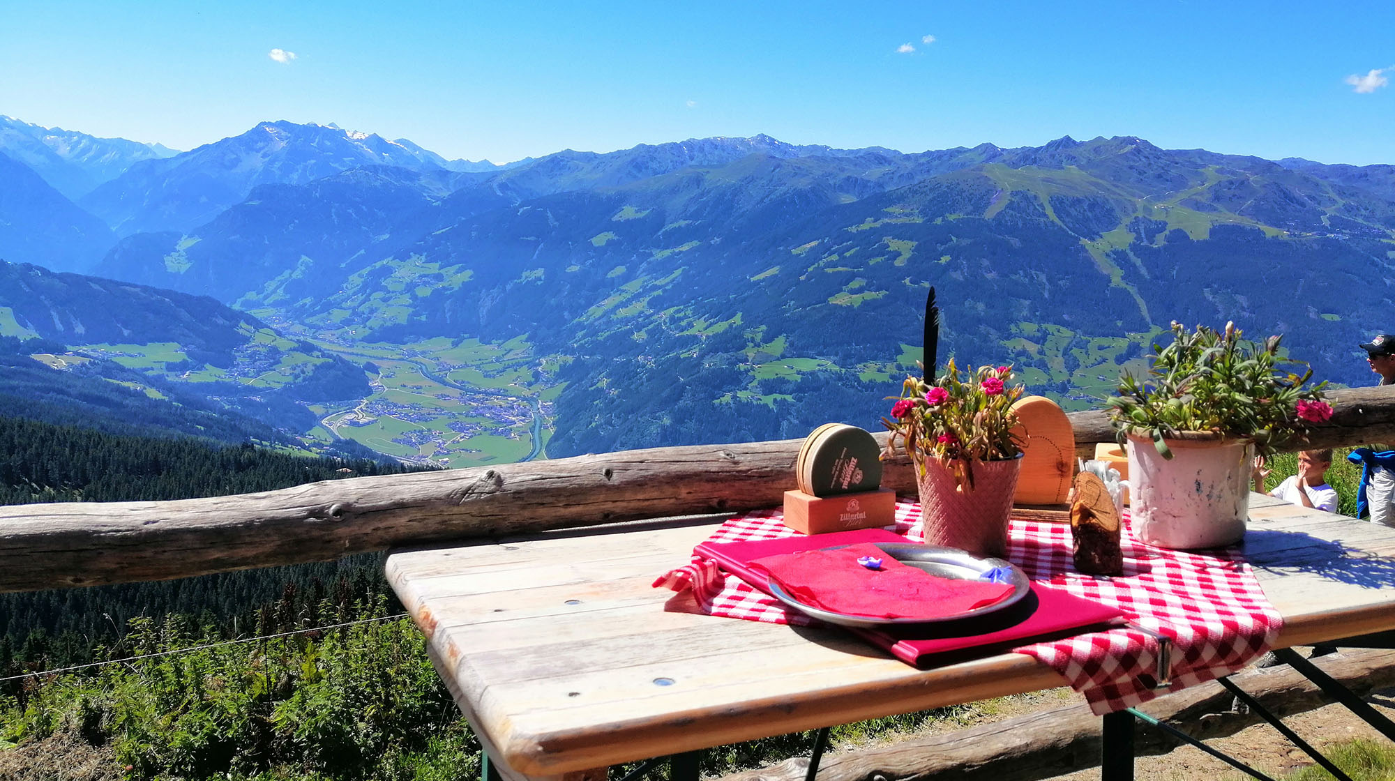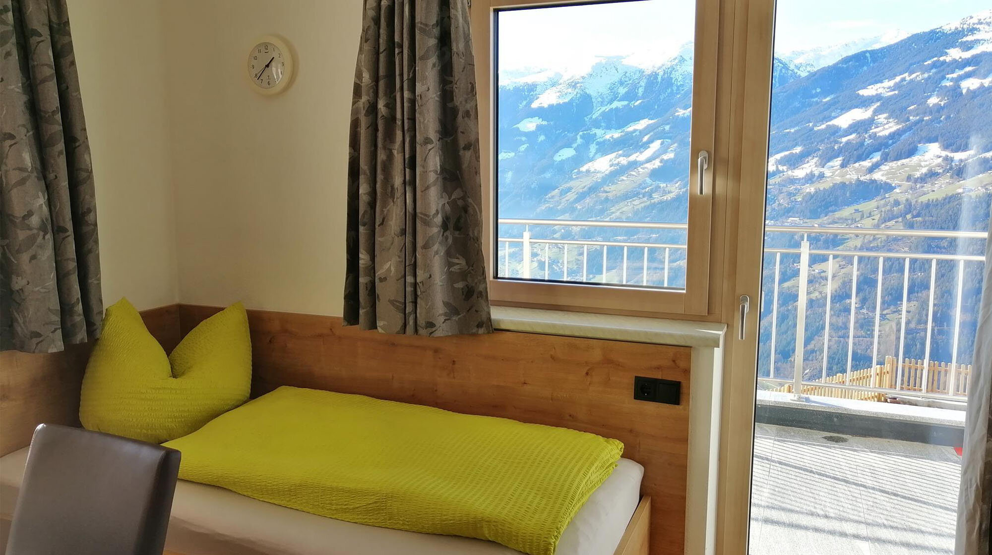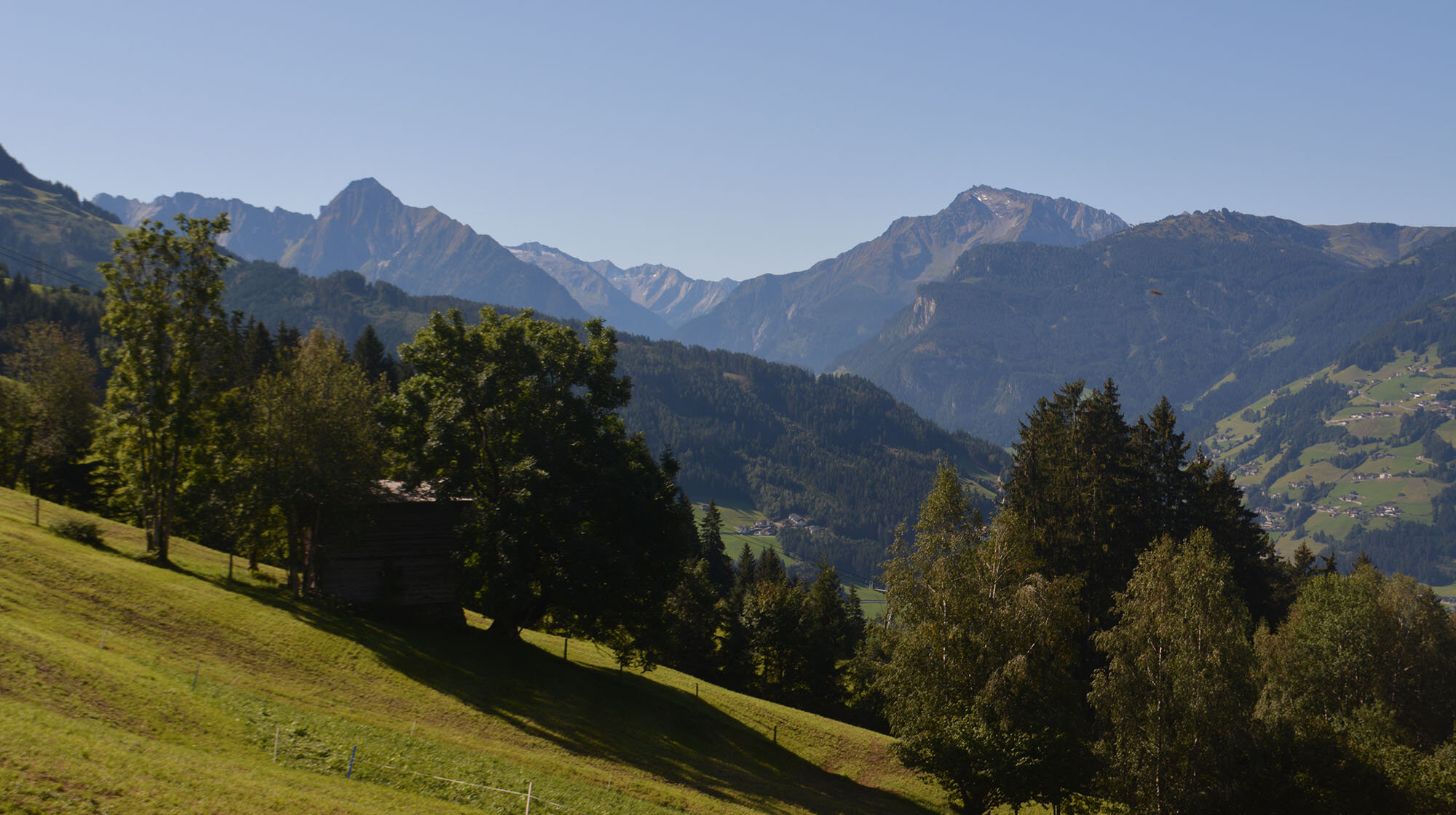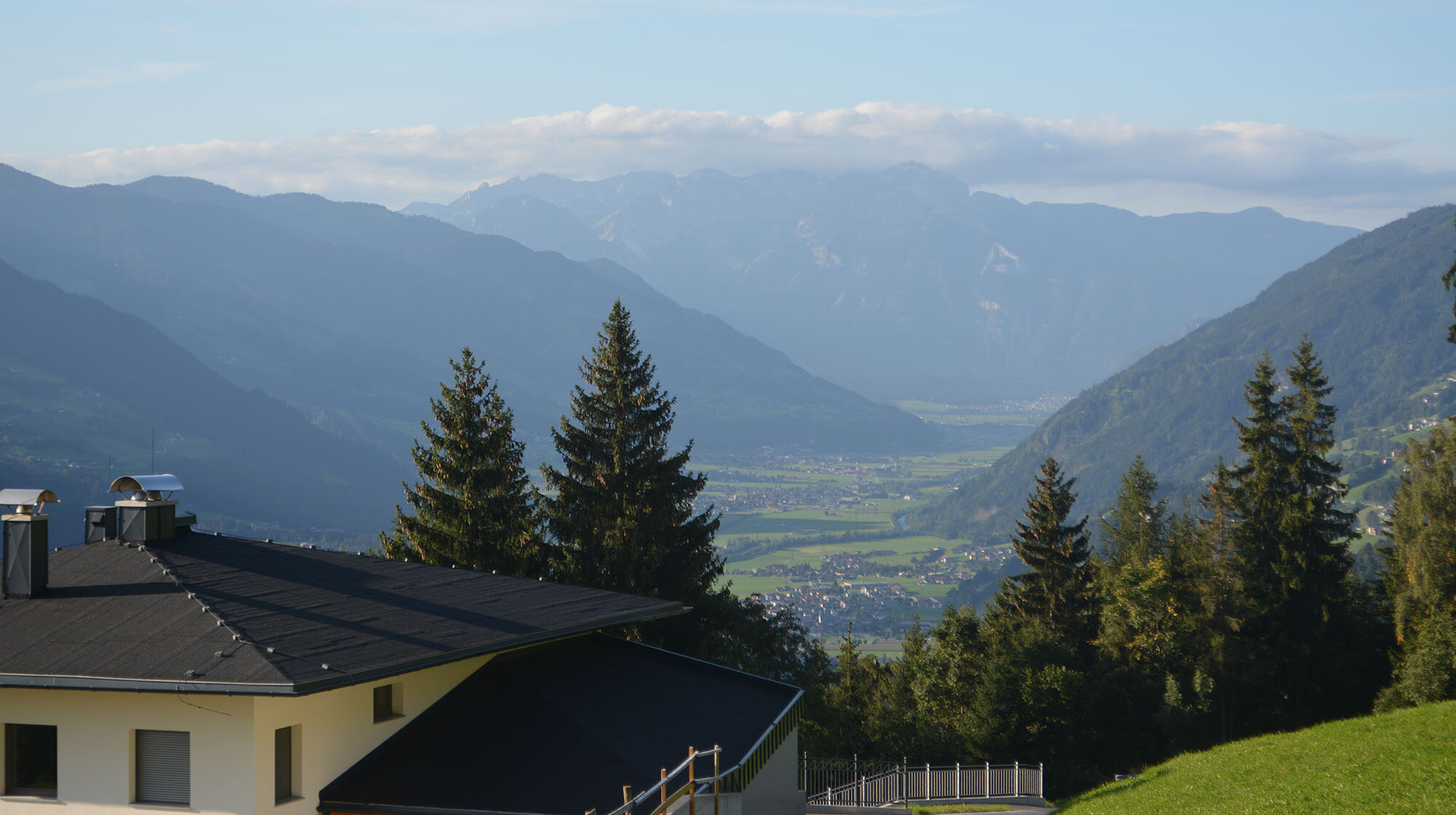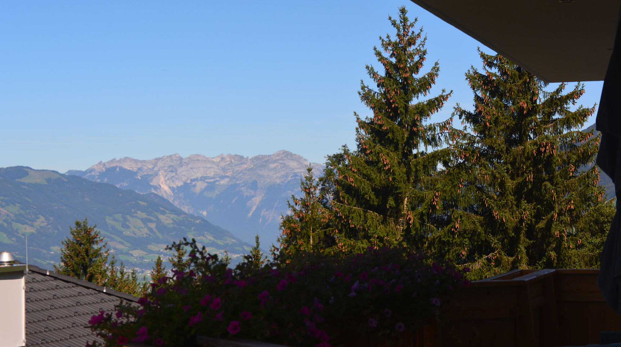 Machen Sie Urlaub bei uns in sonniger und ruhiger Lage mit traumhaften Panoramablick auf die umliegende Zillertaler Bergwelt- abseits von Verkehr und Lärm.