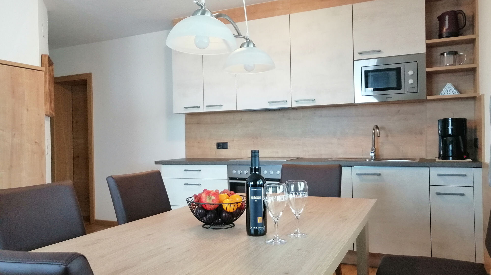 Unser Apartment ist sehr modern und gemütlich eingerichtet. Wir bieten Ihnen eine voll ausgestattete Ferienwohnung (inkl. Spülmaschine, Mikrowelle, Kabel-TV) mit 2 Doppelbettzimmern (wahlweise trennbar) für 4-5 Personen, eine Wohnküche, Dusche/WC, seperates WC sowie einer großen Terrasse und Garten mit Wohlfühlatmosphäre. Unser Apartment verfügt über einen eigenen Eingang und hat einen Skiraum mit Skischuhtrockner.